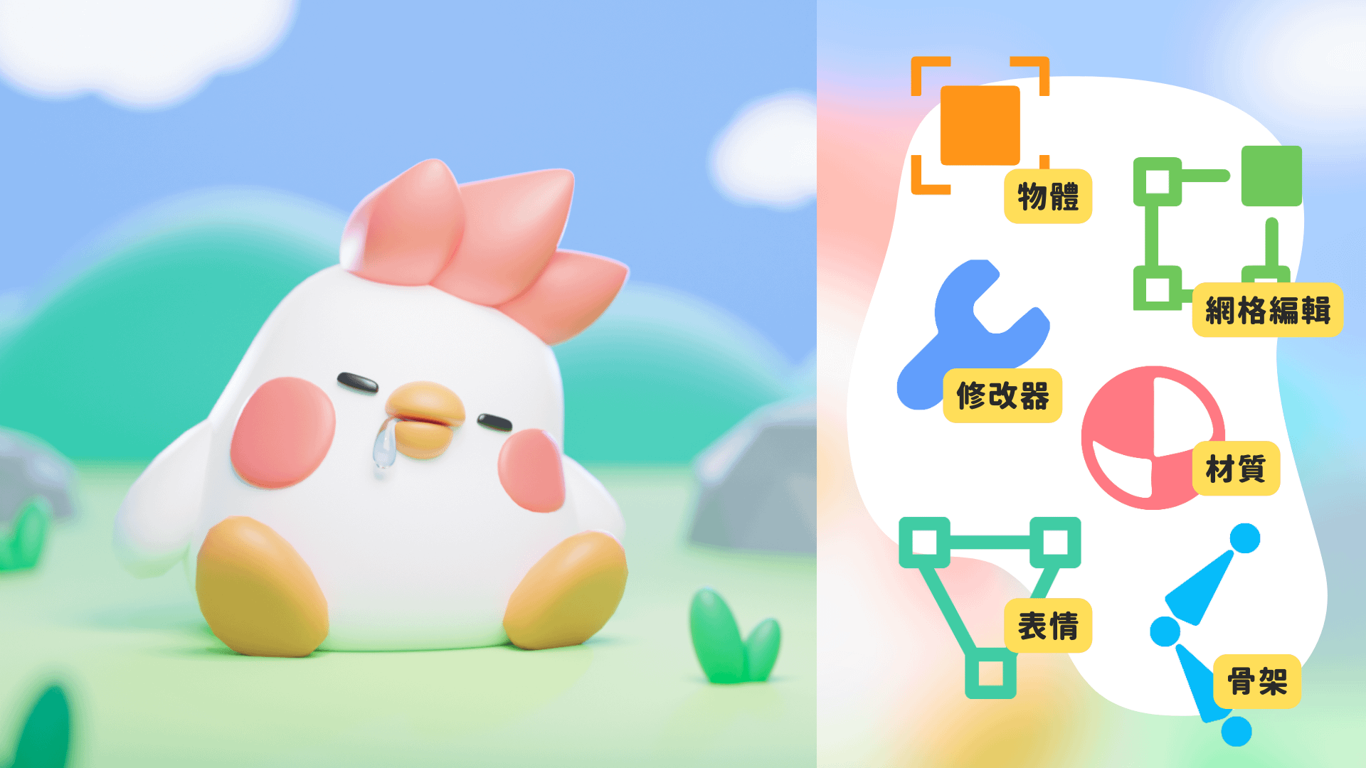 從零基礎到專業創作,輕鬆學習3D角色設計!透過系統化的地圖引導,帶你一邊創作精美角色,一邊學會Blender角色創作的關鍵技巧。